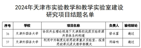 近日,天津市教委公布了2024年天津市实验教学和教学实验室建设研究项目结题结果。天津外国语大学立项的“协同共生理论视角下天津高校优质实验资源共享体系的构建”“利用中外制度比较思政课重点实验室,探索思政课沉浸式教学新模式”2个项目全部通过结题验收。